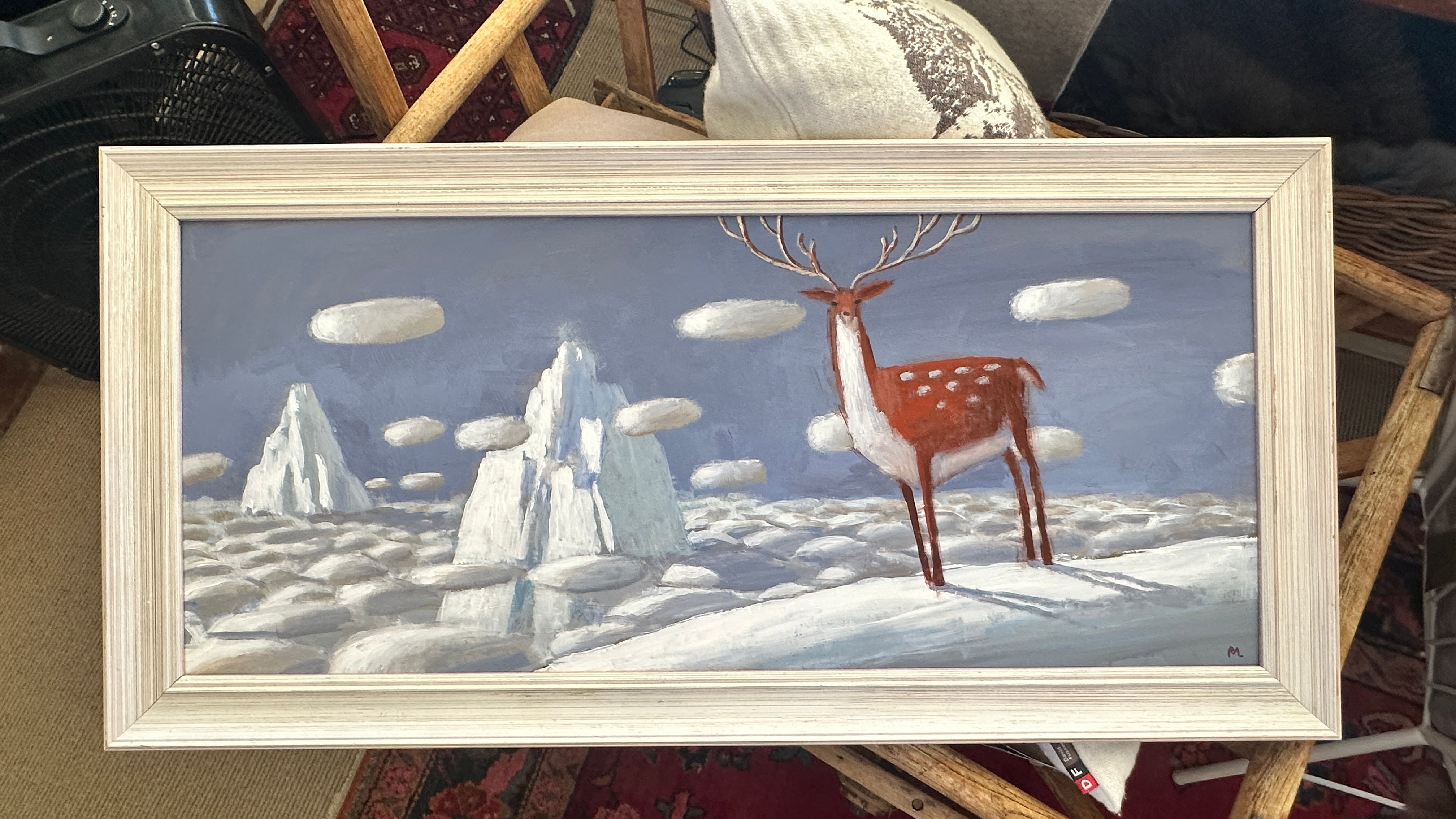 Acrylic on BOARD painting in repurposed vintage timber  frame - ready to hang