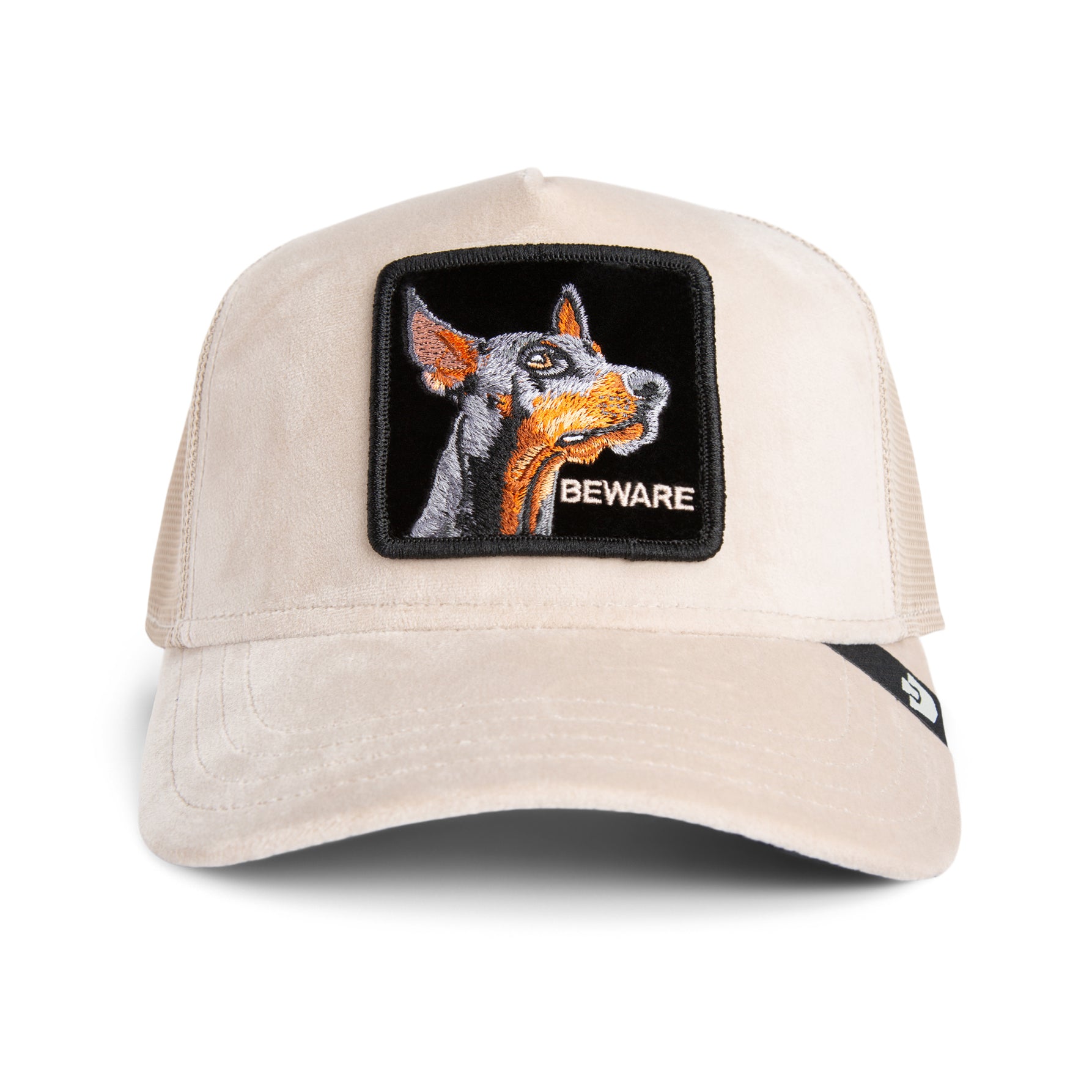 The patch says BEWARE because confidence this smooth makes people nervous. It’s alert, poised, and always one step ahead. A luxury guard dog for your head, polished but never passive.