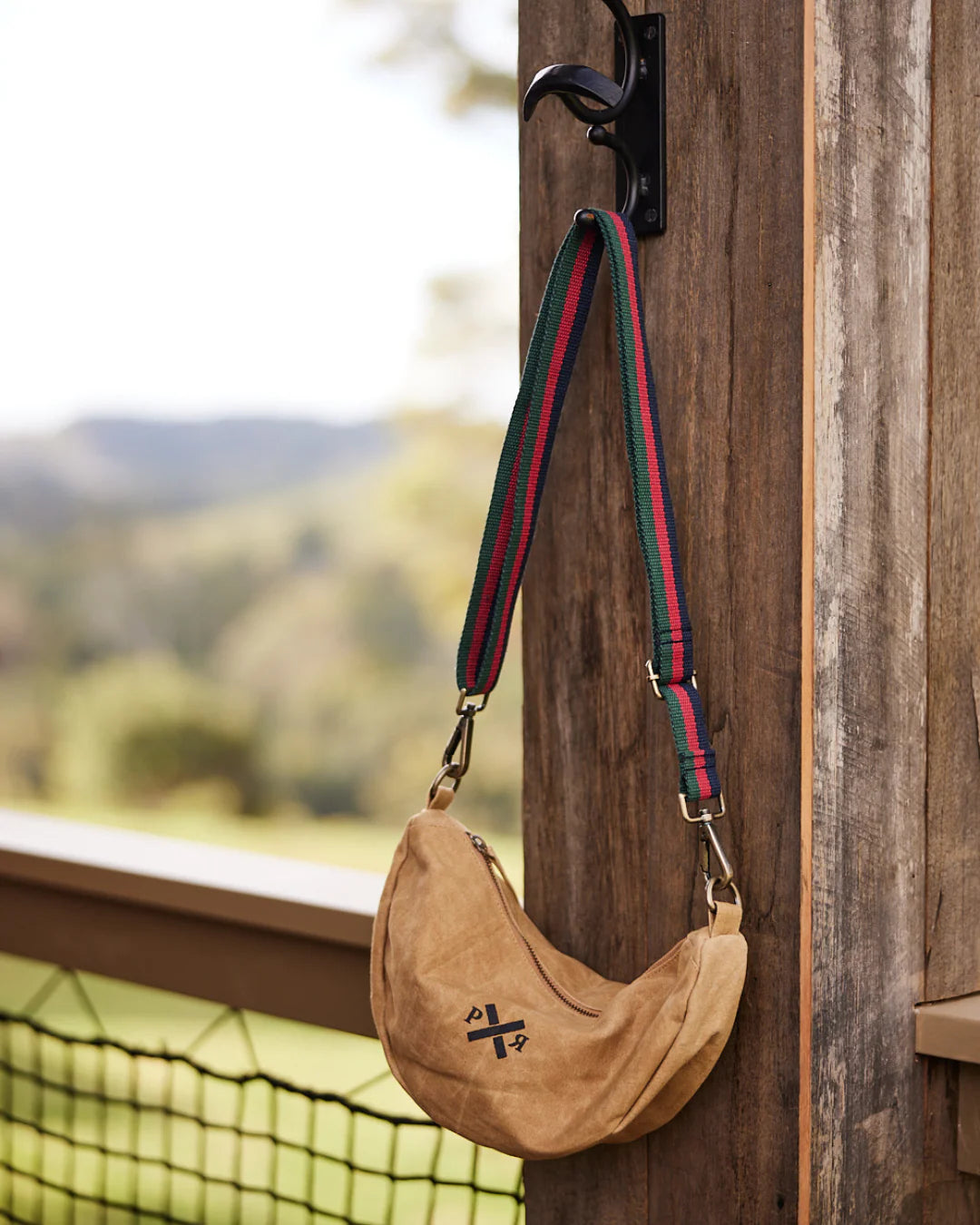 Meet your go-anywhere, do-anything companion. The Slow Road Round Shoulder Bag in Clay is crafted from rugged waxed canvas - structured yet ready to bend and roll with every road you take. At a compact 32 × 16 × 8 cm, this little legend is retro in silhouette but ultra-modern in spirit, with a bold custom stripe strap that’s yours to adjust and wear your way.