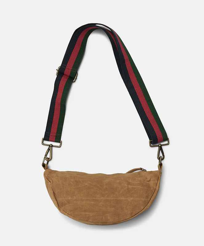 Waxed cotton canvas body (fade-ready and full of soul). Custom stripe strap, fully adjustable for your style. Compact but capable -perfect when you don’t want to overpack. Handmade and washed, so each bag tells its own story