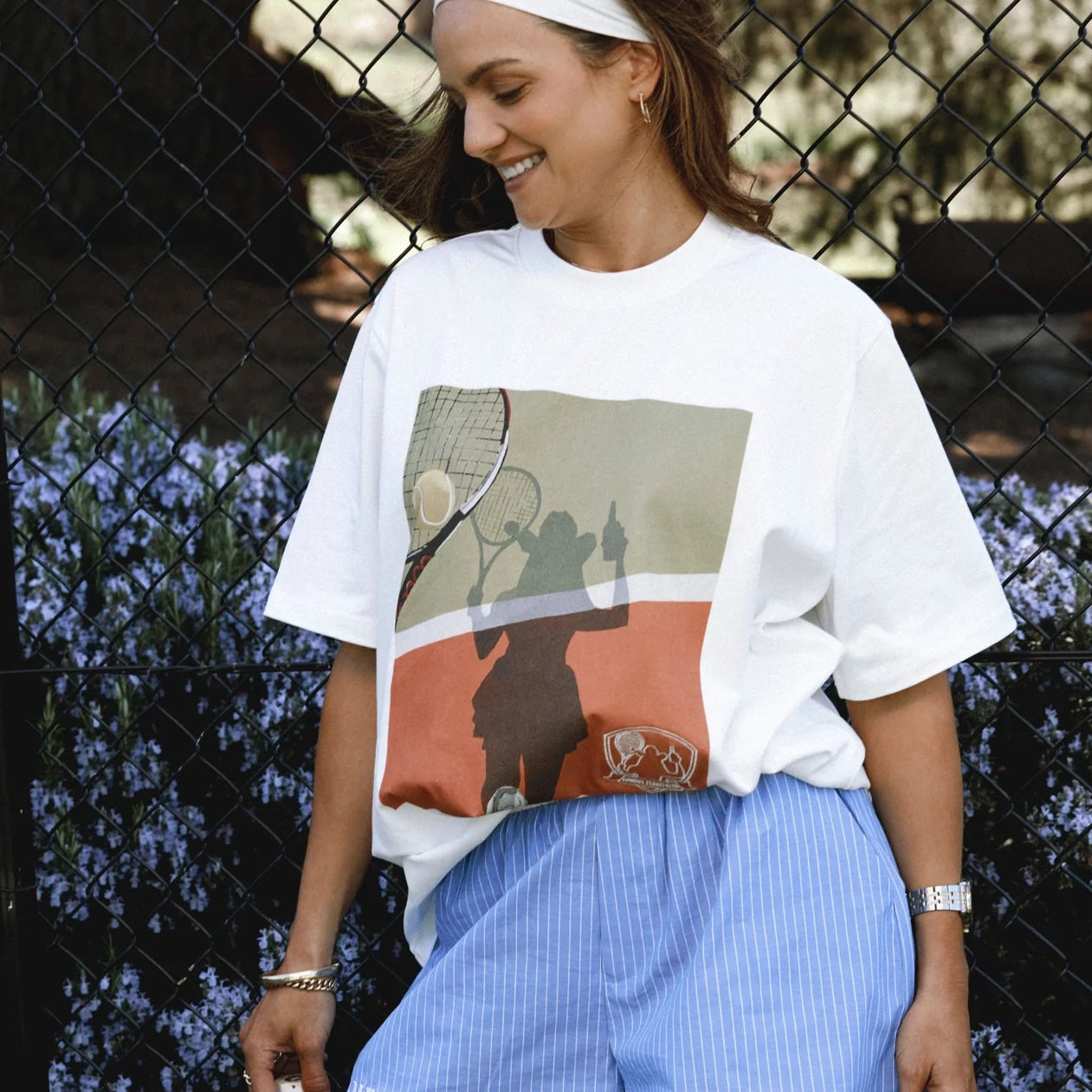 The Cheers Crew Tee captures the playful spirit of Cowboy Tennis Club with a crisp white base and relaxed crew silhouette. Centred on the front, Whitney Spicer’s artwork depicts a cowgirl raising her beer in celebration—a cheeky cheer to a game well played. With its oversized ease and lighthearted energy, this tee blends heritage court style with off‑duty fun, making it a collectible piece that moves seamlessly between match and leisure.