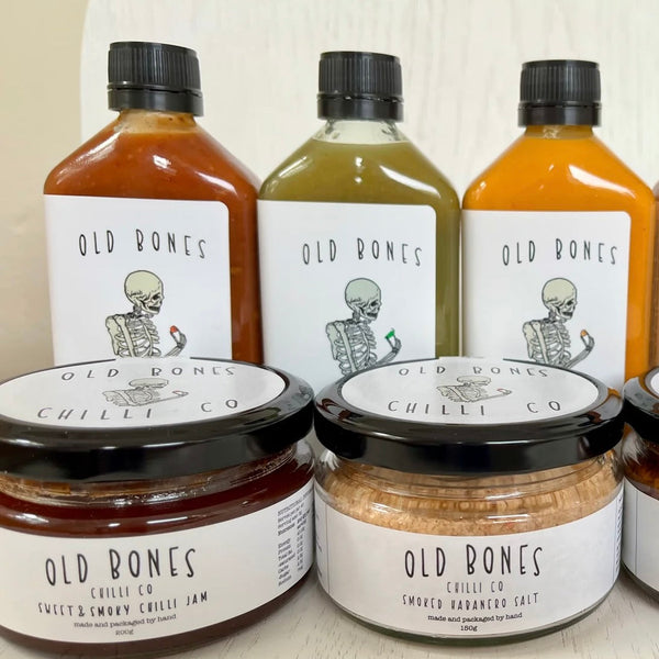 Old Bones Chilli Co is a multi award winning, family-owned, chilli sauce manufacturer based in Sydney, Australia, creating flavour-first hot sauces with just the right kick. Founded in 2019, we’ve grown from a home kitchen to an award-winning brand with over 80 international accolades and a loyal following. Our mission is simple: make chilli sauce that people love — bold, balanced, and made with care.