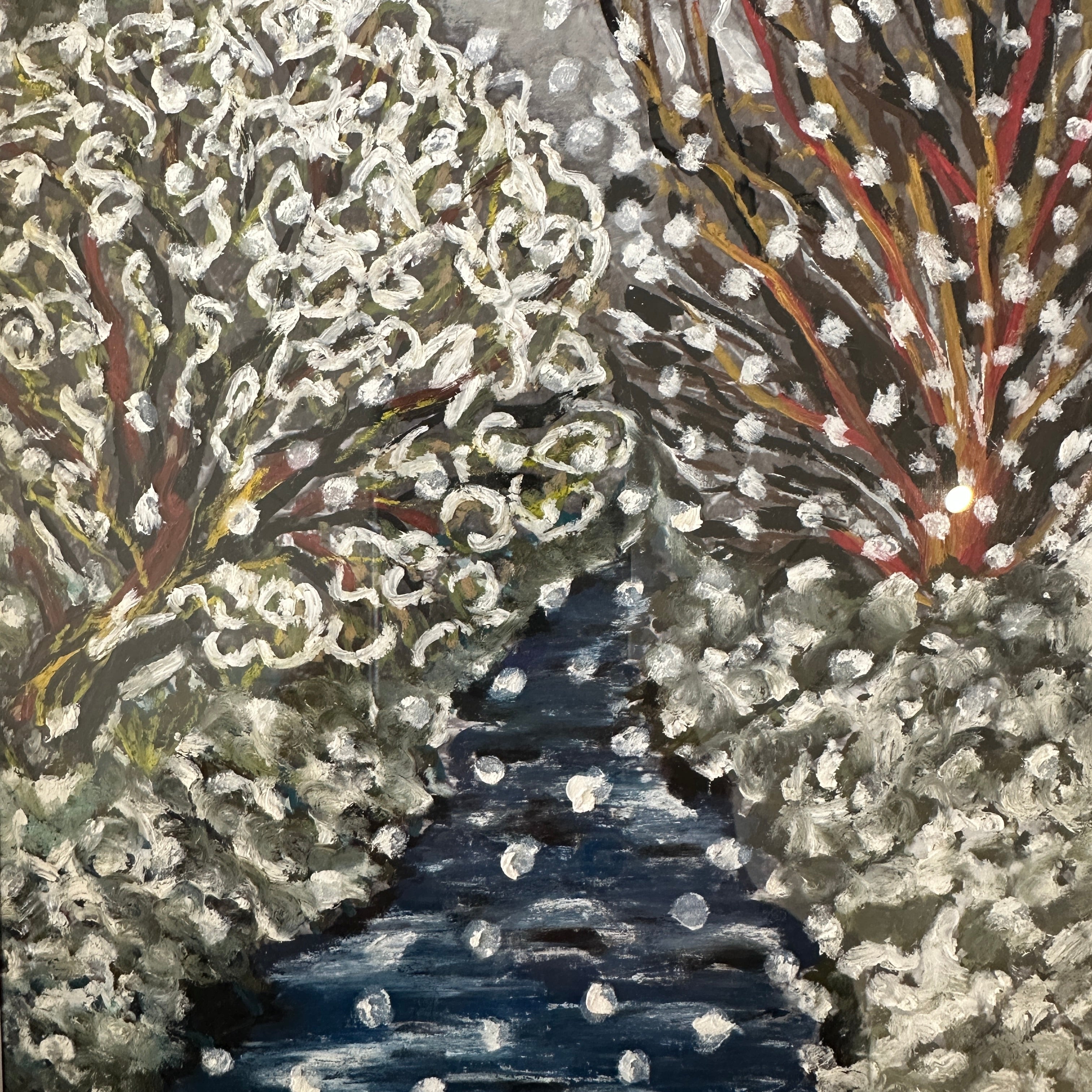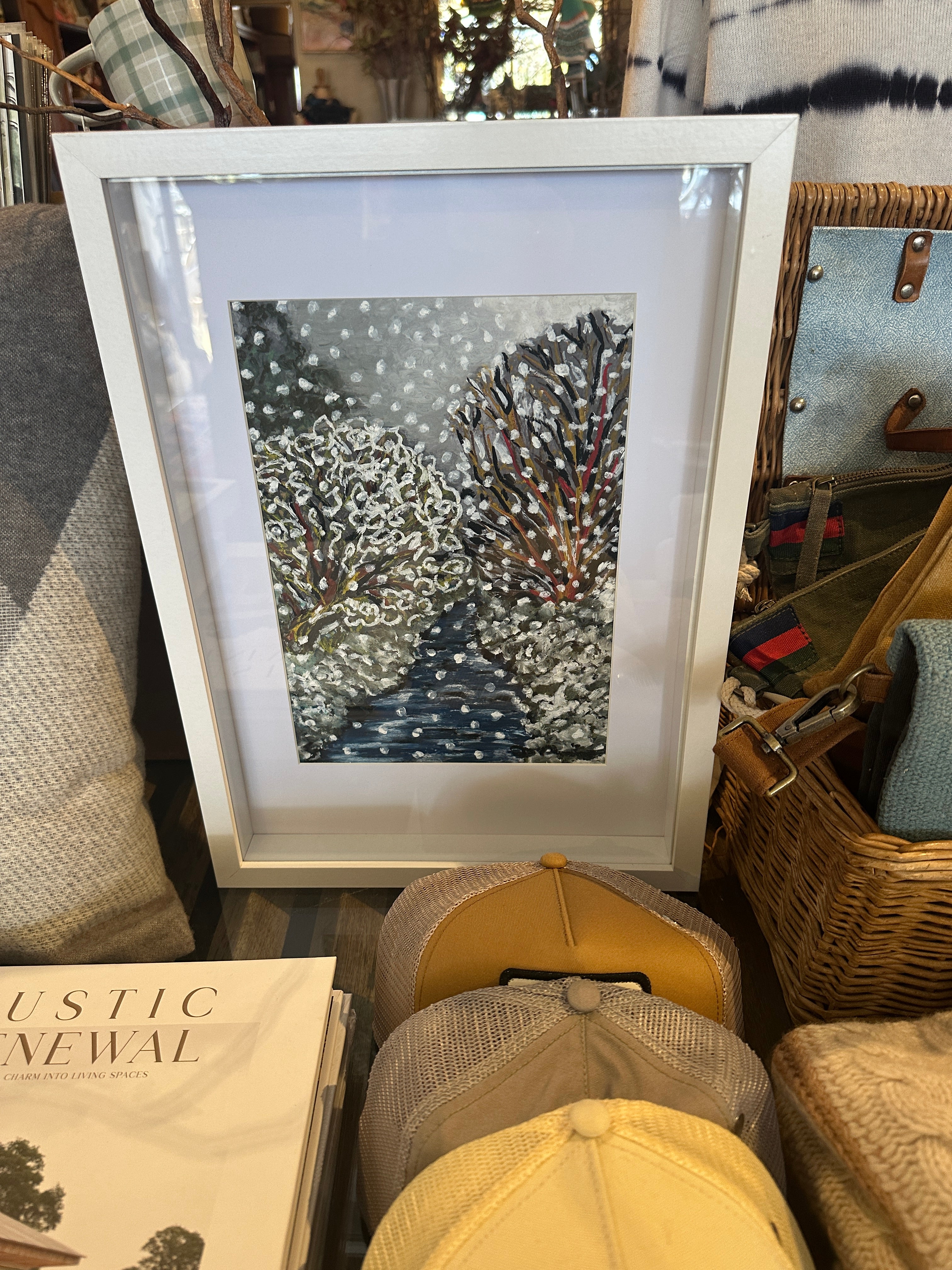 When snow falls lightly on a creek lined with snow gums, the world seems to pause in a moment of perfect stillness. The gentle flakes drift down in silence, softening every edge and blanketing the landscape in a delicate hush. The snow gums, with their smooth vibrant trunks and twisting branches, stand gracefully against the white snow, their brilliant colours putting on a show.