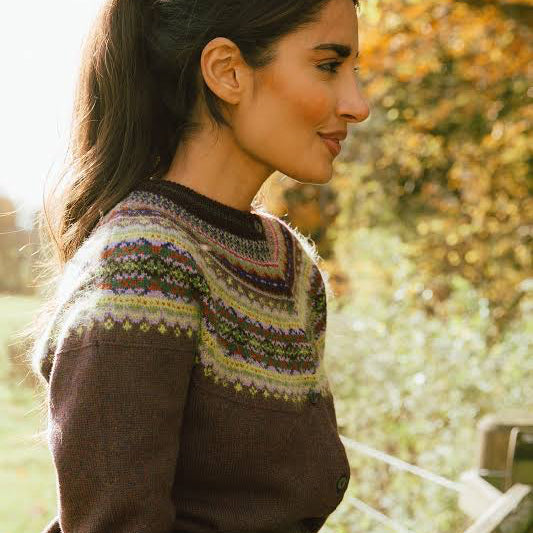 This Signature shape shape and companion to the Alpine Cardigan is a more relaxed fit. Our Fairisle patterned yoke 100% MERINO WOOL JUMPER has a slightly shaped waist for a flattering fit. Finished with cosy, long-turn down cuffs to keep your hands warm. It is perfect for layering with skirts, dresses and high waisted jeans for a stylish casual look.
