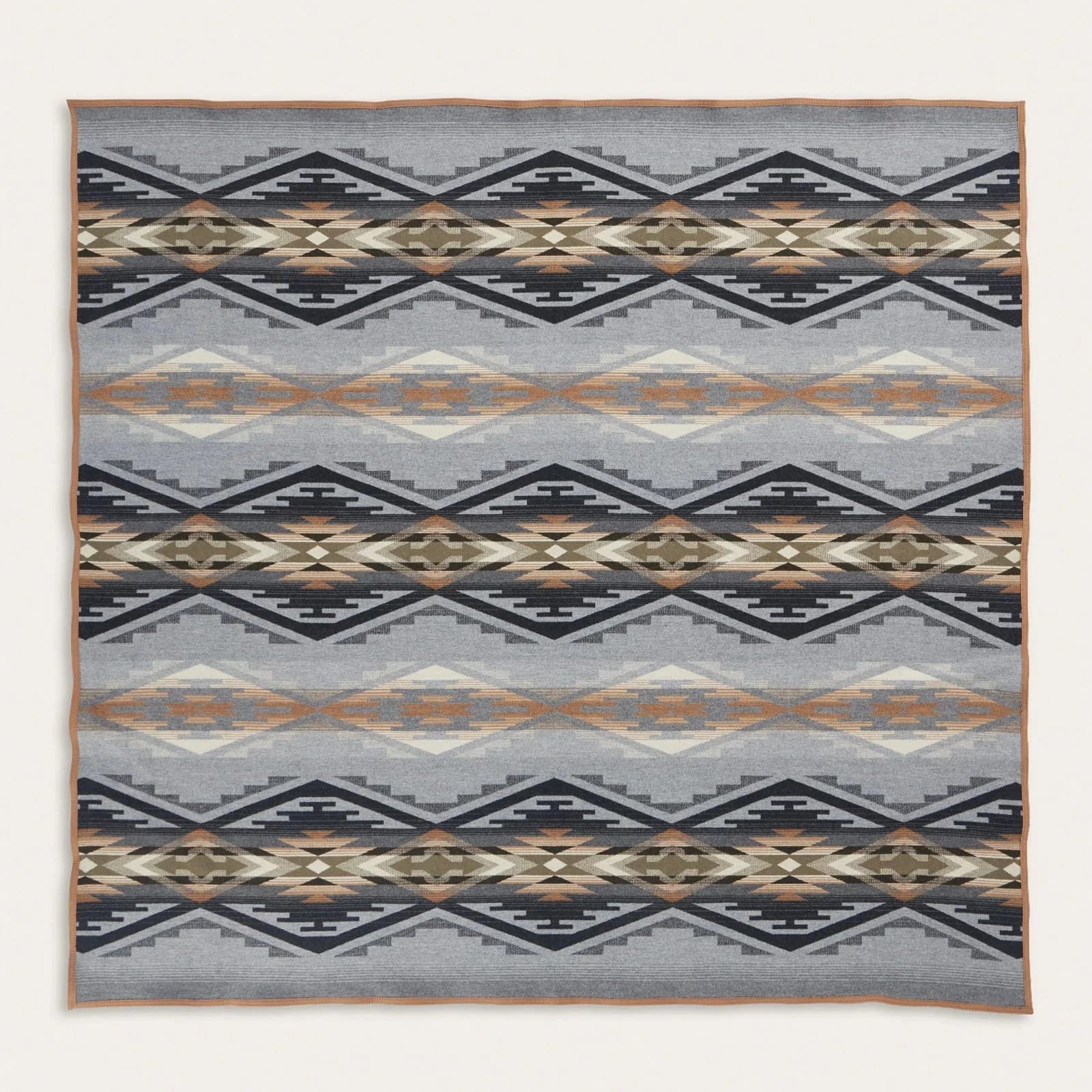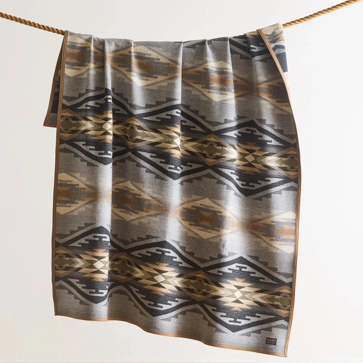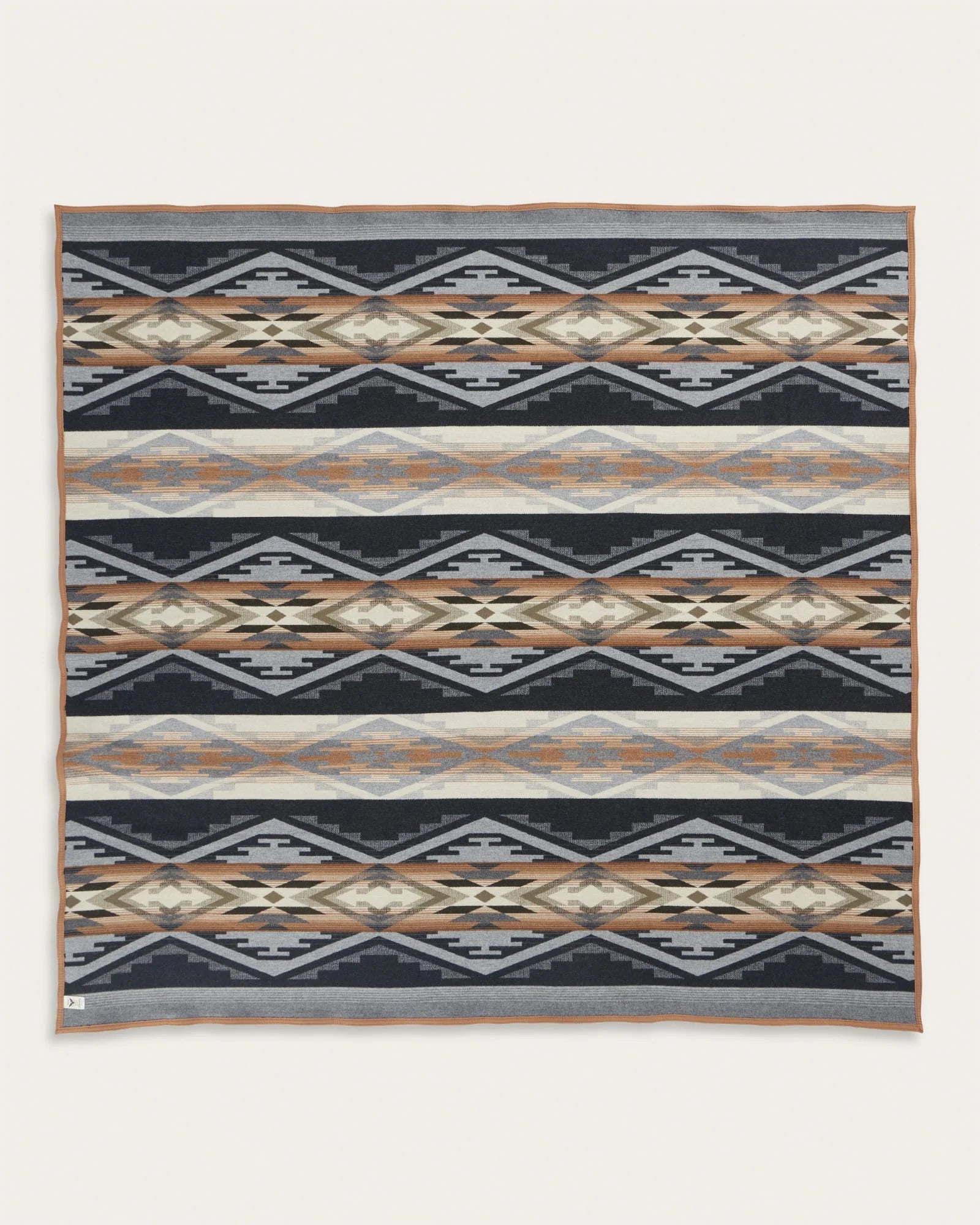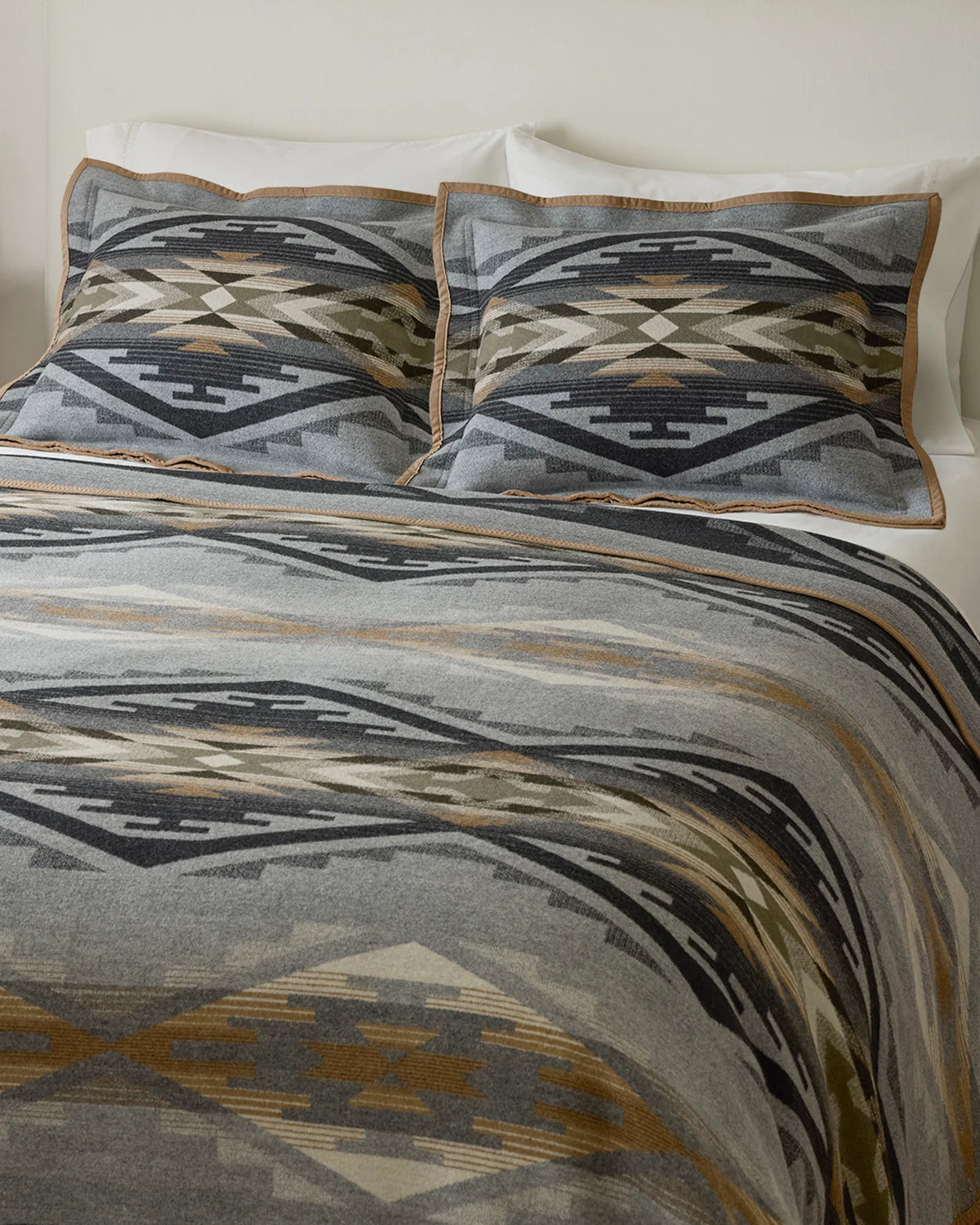 This USA-made blanket is inspired by Tumalo Mountain, a peak in the High Cascades. Hikers who reach the top of this shield volcano find stunning views of three more volcanic beauties: Three Sisters, Broken Top, and Mount Bachelor. Smaller lines and ridges represent Tumalo State Park near Bend, Oregon. Pair with matching sham.