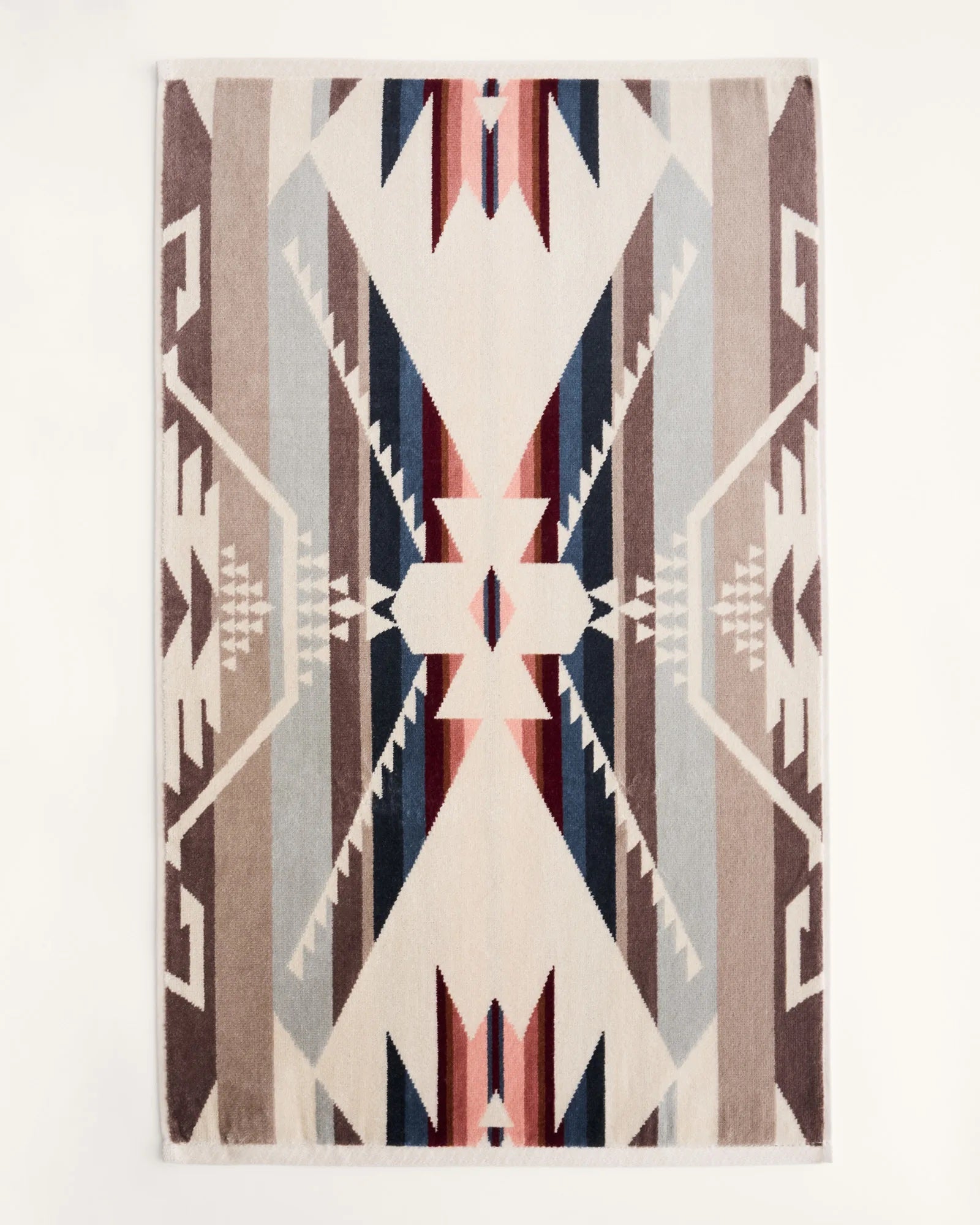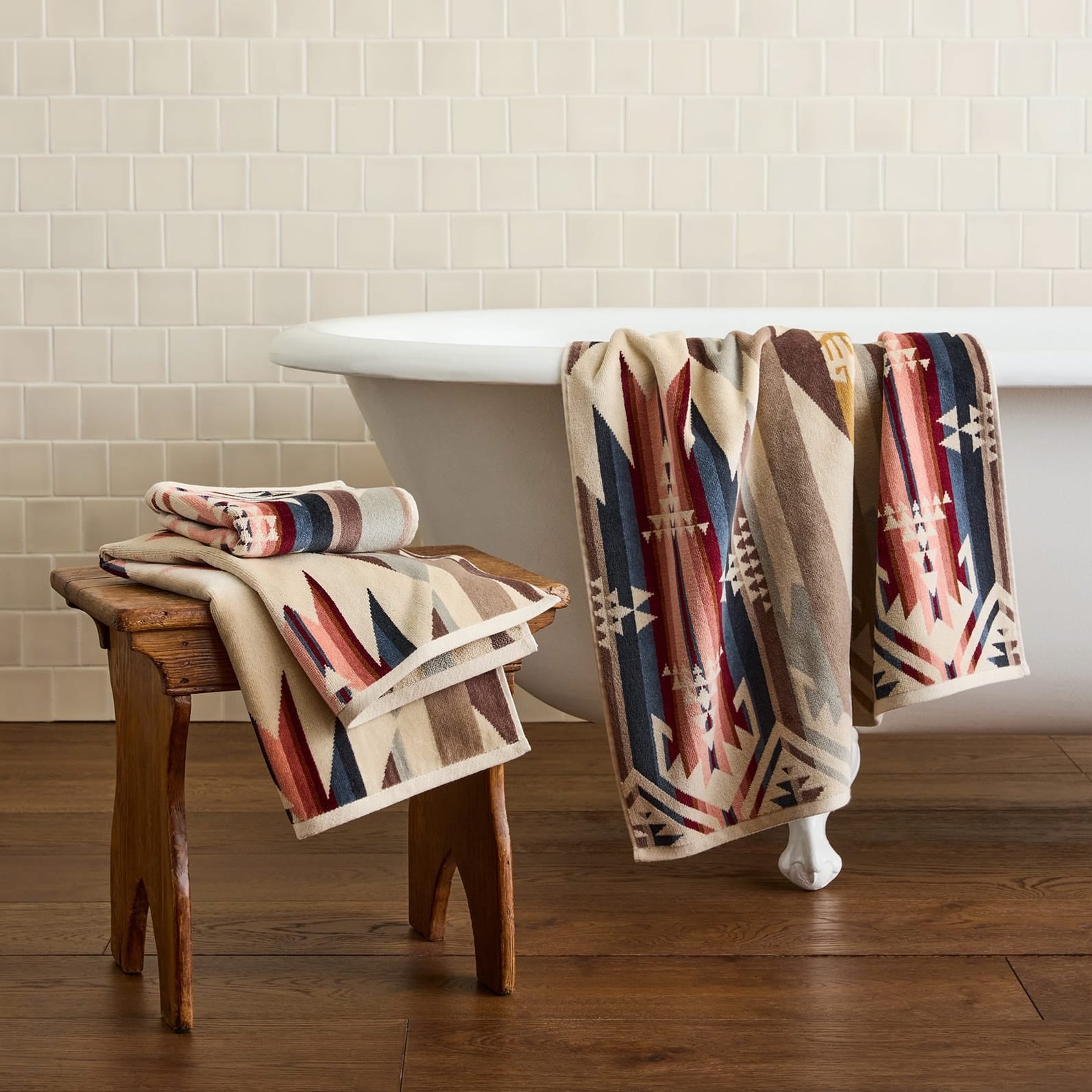 Extra-plush terry velour bath towel is sheared to a velvety softness on one side, looped for superior absorbency on the other. Thick and luxurious, this striking jacquard towel is specially woven to keep its rich color, wash after wash.